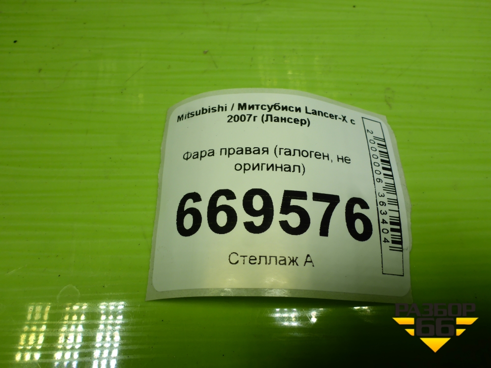 Фара правая (галоген, не оригинал) для Mitsubishi Lancer-X с 2007г (Лансер) в Екатеринбурге