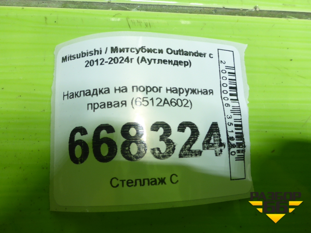 Накладка на порог наружная правая (6512A602) для Mitsubishi Outlander с 2012-2024г (Аутлендер) в Екатеринбурге