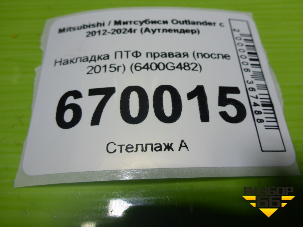 Накладка ПТФ правая (после 2015г) (6400G482) для Mitsubishi Outlander с 2012-2024г (Аутлендер) в Екатеринбурге