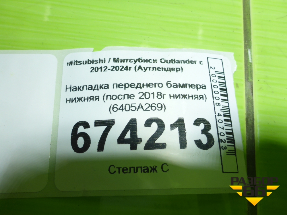Накладка переднего бампера нижняя (после 2018г нижняя) (6405A269) для Mitsubishi Outlander с 2012-2024г (Аутлендер) в Екатеринбурге