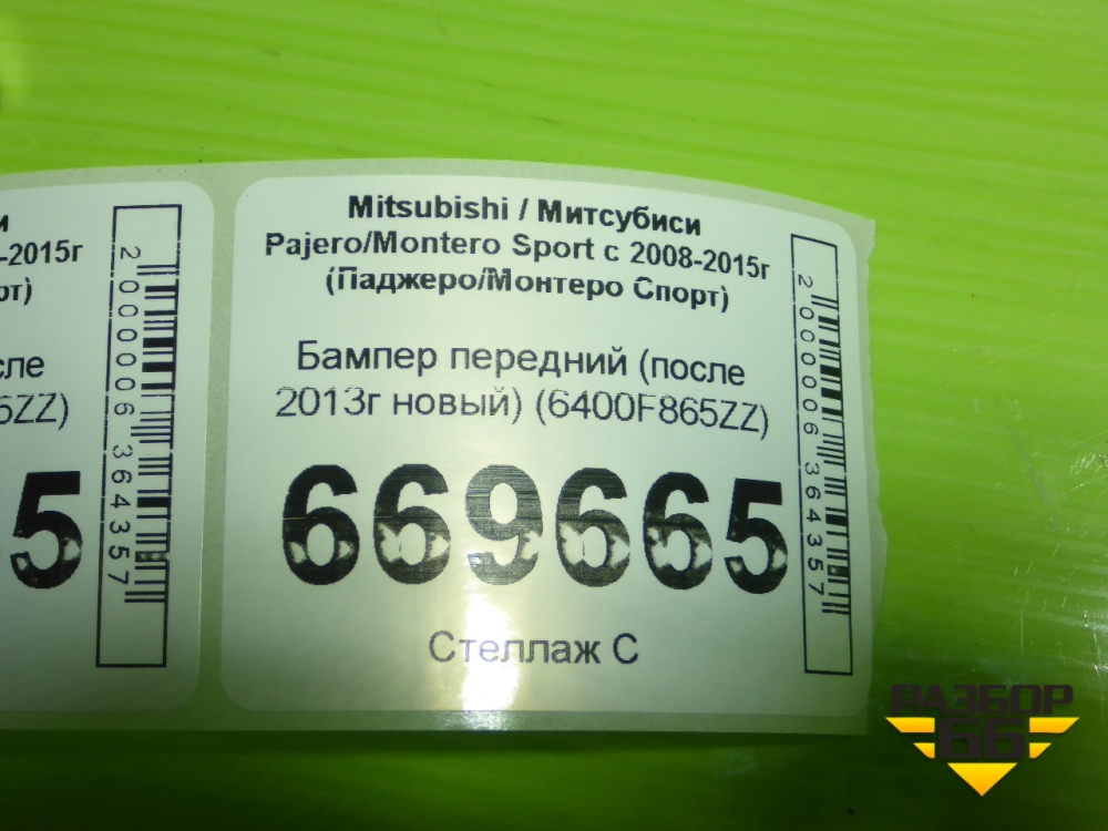 Бампер передний (после 2013г новый) (6400F865ZZ) для Mitsubishi Pajero/Montero Sport с 2008-2015г (Паджеро/Монтеро Спорт) в Екатеринбурге