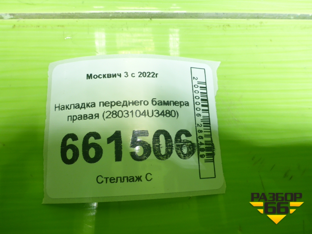 Накладка переднего бампера правая (2803104U3480) для Москвич 3 с 2022г в Екатеринбурге
