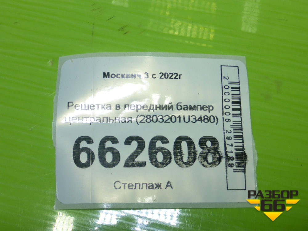 Решетка в передний бампер центральная (2803201U3480) для Москвич 3 с 2022г в Екатеринбурге