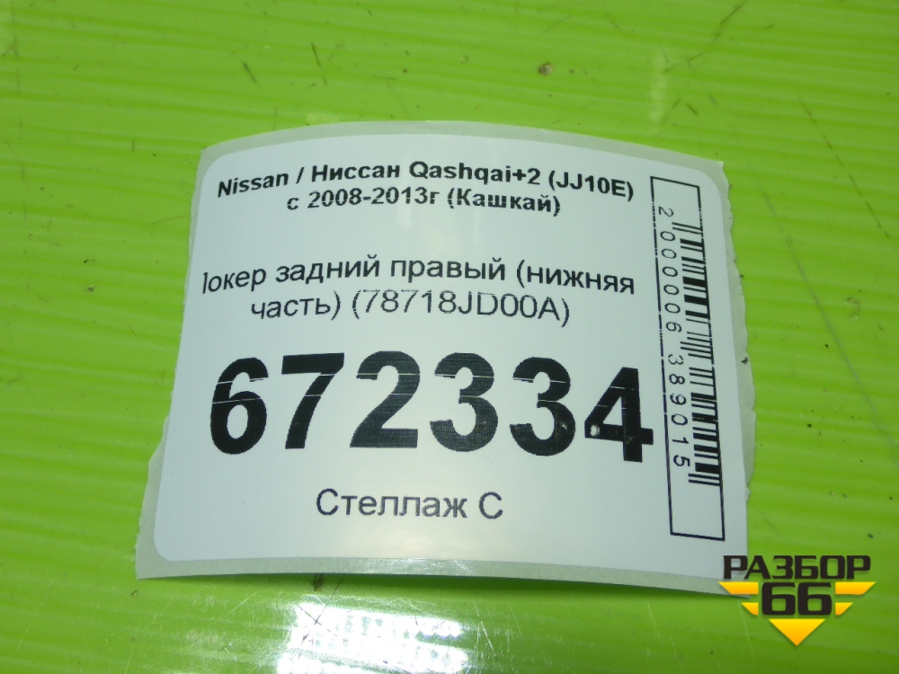 Локер задний правый (нижняя часть) (78718JD00A) для Nissan Qashqai+2 (JJ10E) с 2008-2013г (Кашкай) в Екатеринбурге
