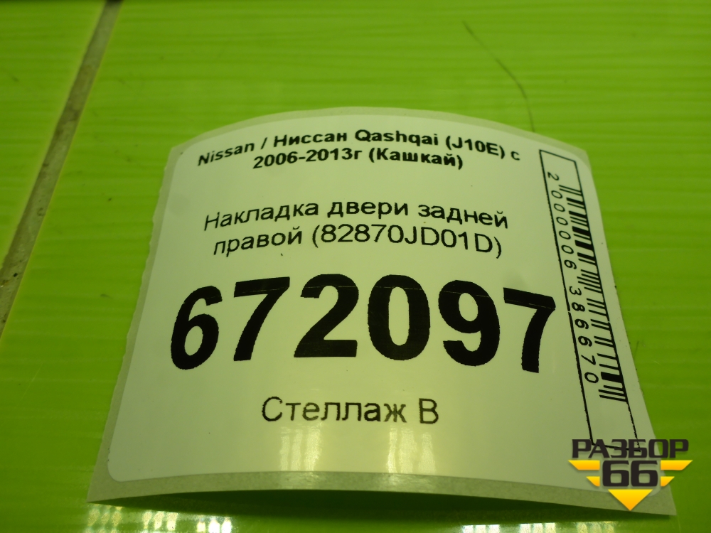 Накладка двери задней правой (82870JD01D) для Nissan Qashqai (J10E) с 2006-2013г (Кашкай) в Екатеринбурге