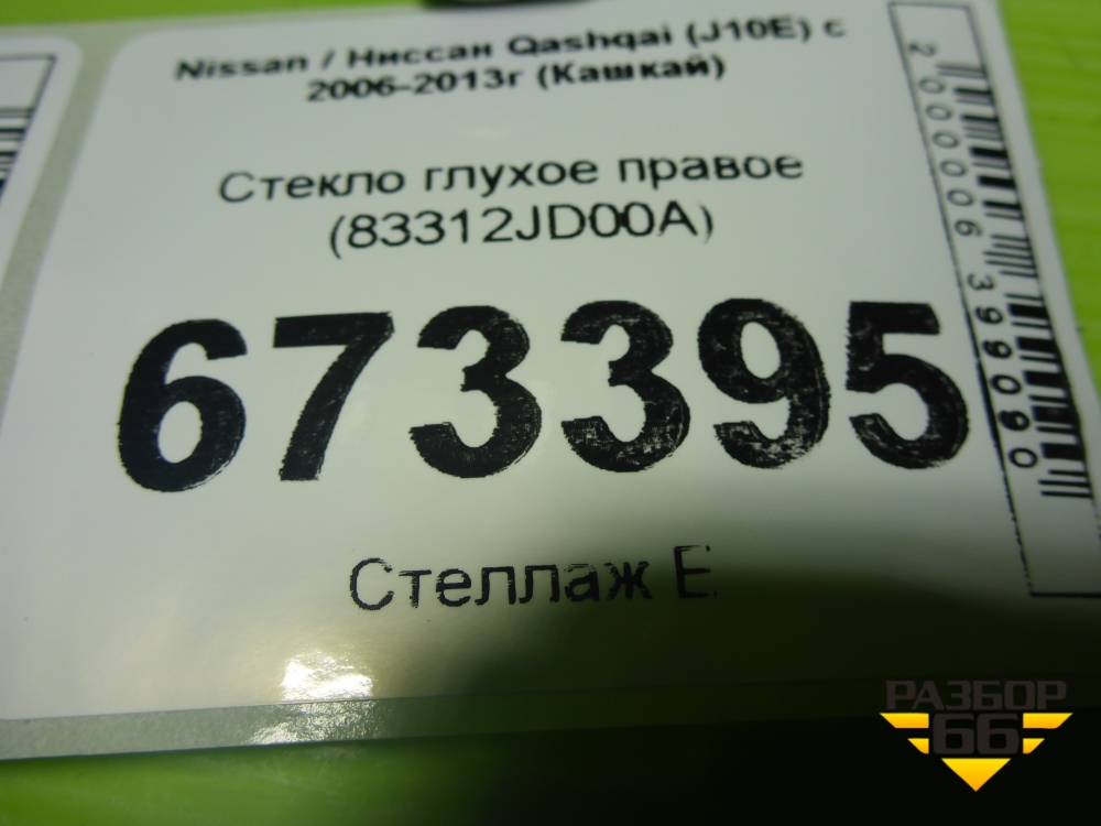 Стекло глухое правое (83312JD00A) для Nissan Qashqai (J10E) с 2006-2013г (Кашкай) в Екатеринбурге