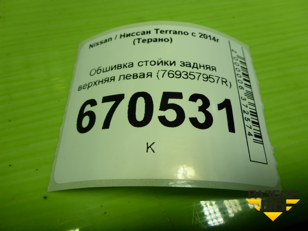 Обшивка стойки задняя верхняя левая (769357957R) для Nissan Terrano с 2014г (Терано) в Екатеринбурге