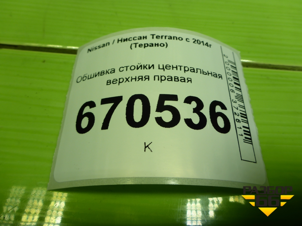 Обшивка стойки центральная верхняя правая (8200732344) для Nissan Terrano с 2014г (Терано) в Екатеринбурге