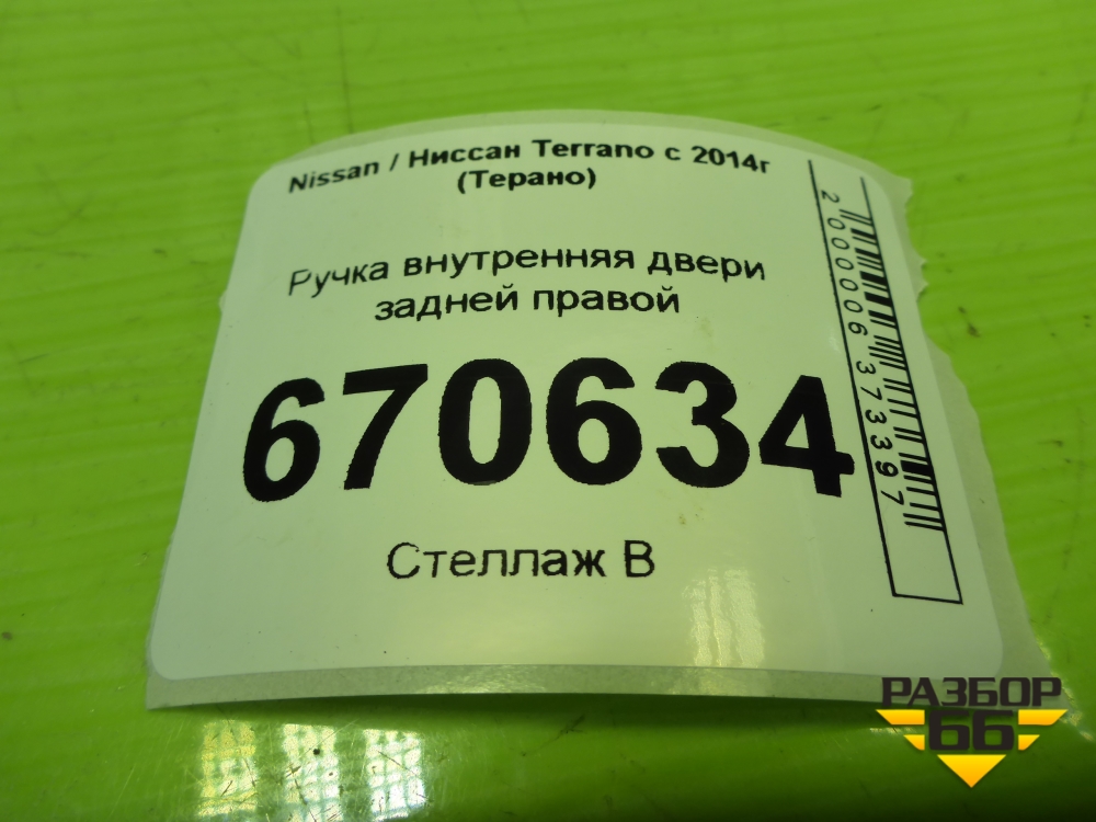 Ручка внутренняя двери задней правой (8200733847) для Nissan Terrano с 2014г (Терано) в Екатеринбурге