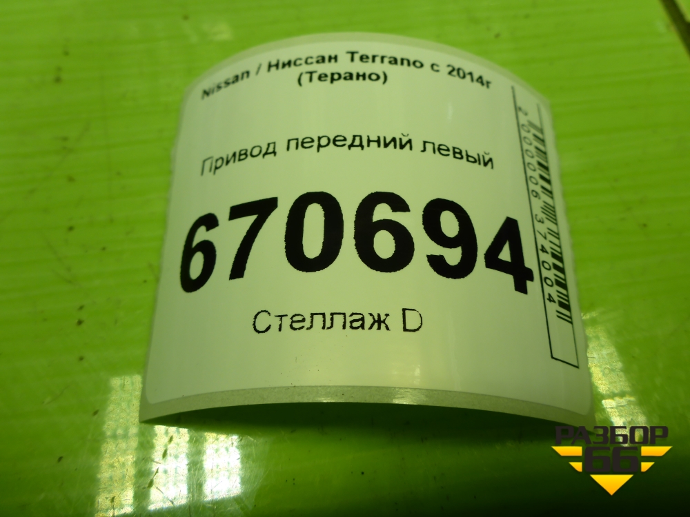 Привод передний левый (шлиц наруж-25,внутр-26) (391015061R) для Nissan Terrano с 2014г (Терано) в Екатеринбурге