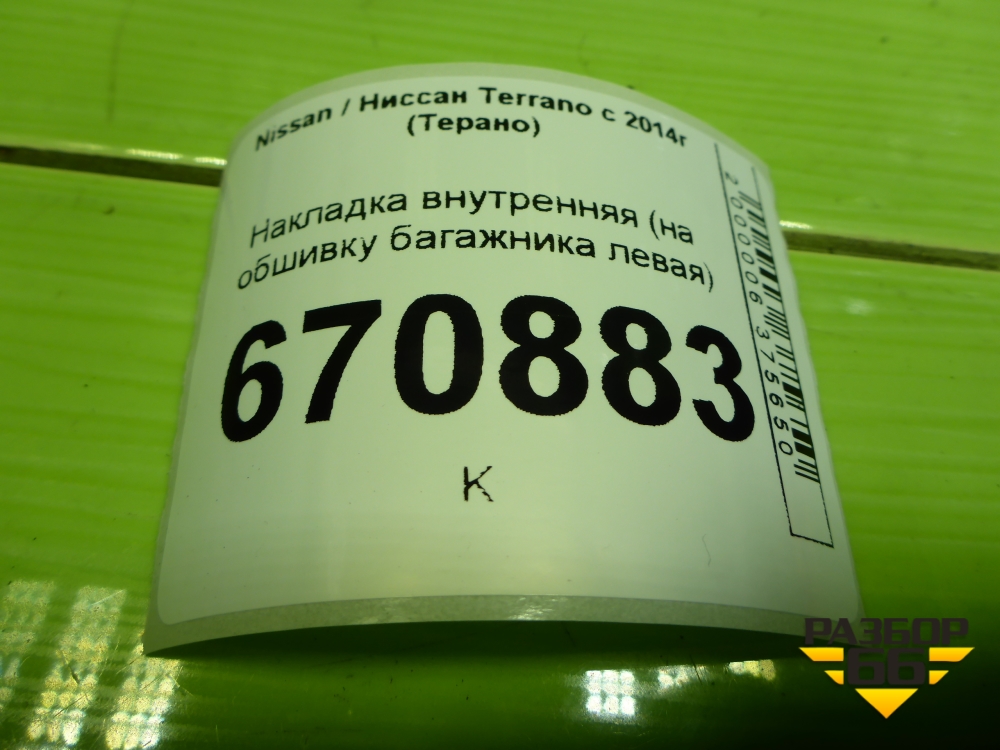 Накладка внутренняя (на обшивку багажника левая) (849519325R) для Nissan Terrano с 2014г (Терано) в Екатеринбурге