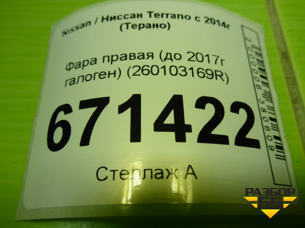 Фара правая (до 2017г галоген) (260103169R) для Nissan Terrano с 2014г (Терано) в Екатеринбурге