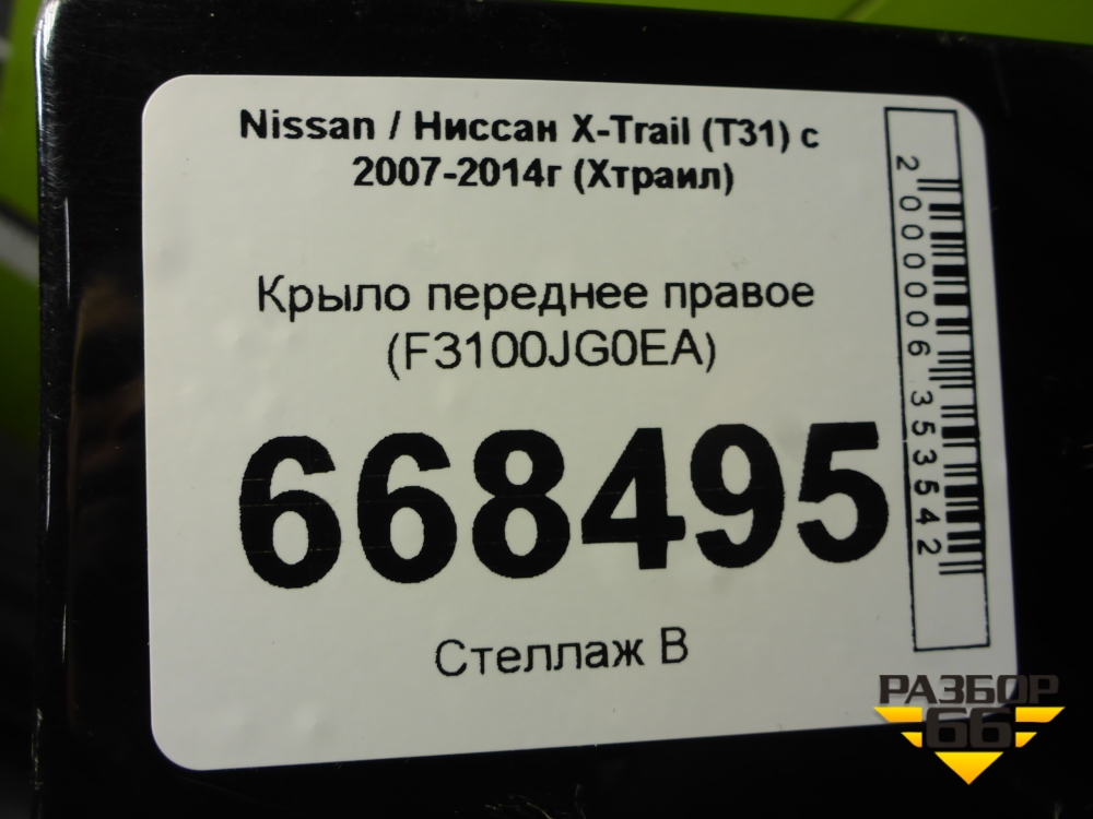 Крыло переднее правое (F3100JG0EA) для Nissan X-Trail (Т31) с 2007-2014г (Хтраил) в Екатеринбурге