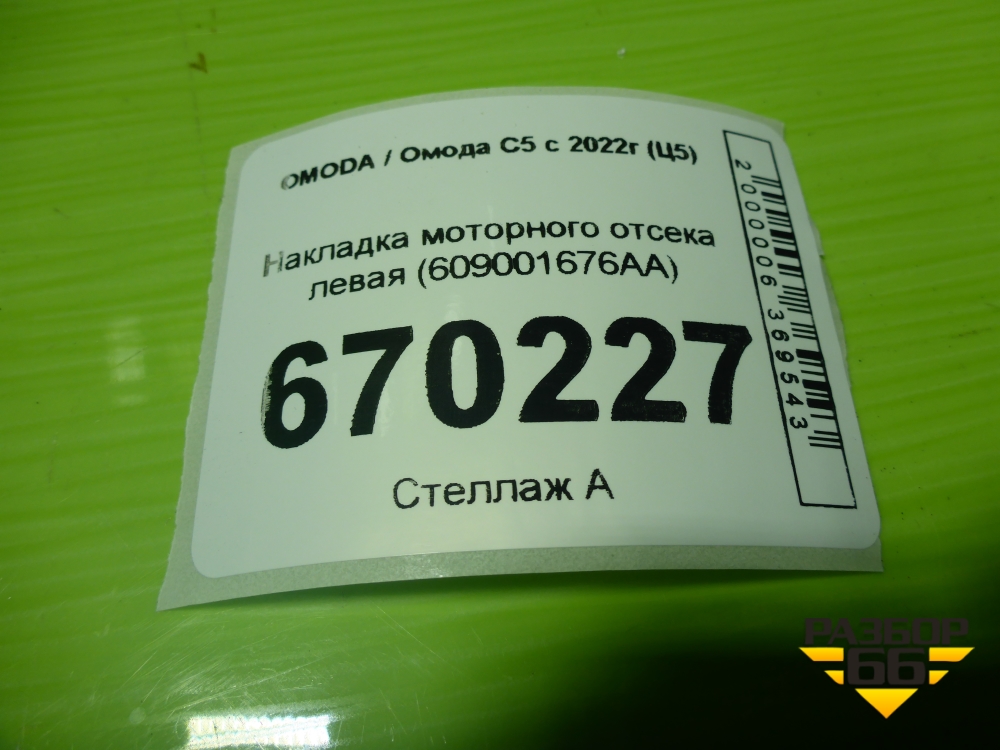 Накладка моторного отсека левая (609001676AA) для OMODA C5 с 2022г (Ц5) в Екатеринбурге