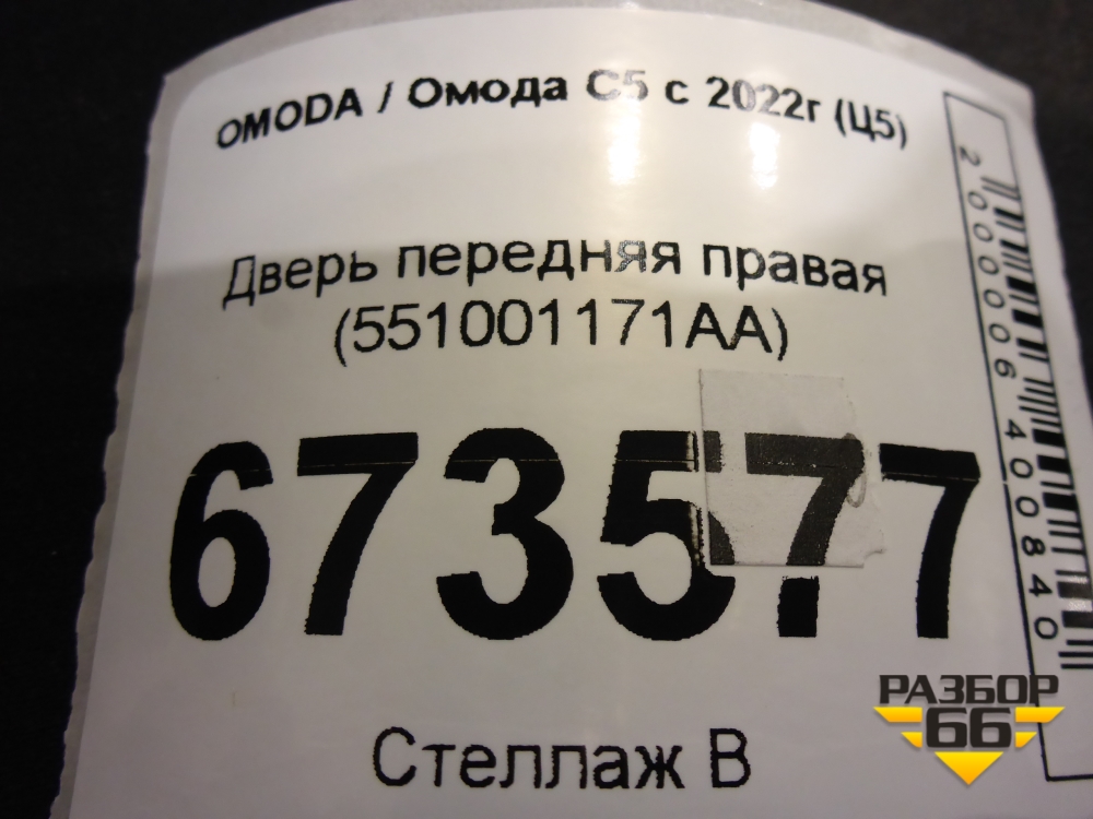 Дверь передняя правая (551001171AA) для OMODA C5 с 2022г (Ц5) в Екатеринбурге