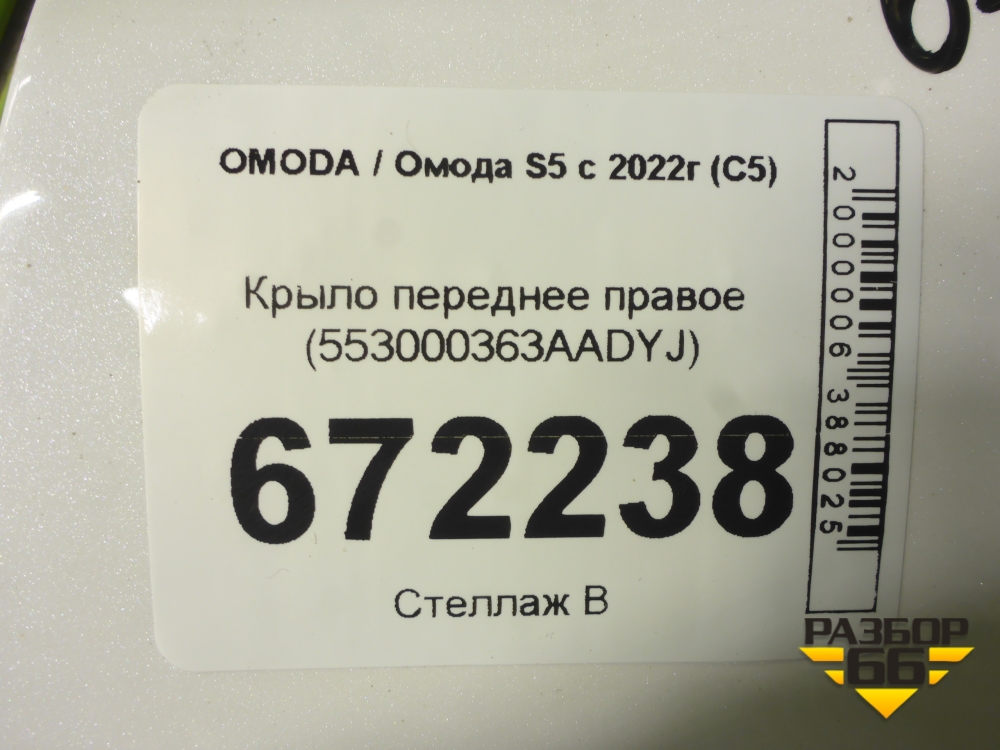 Крыло переднее правое (553000363AADYJ) для OMODA S5 с 2022г (С5) в Екатеринбурге