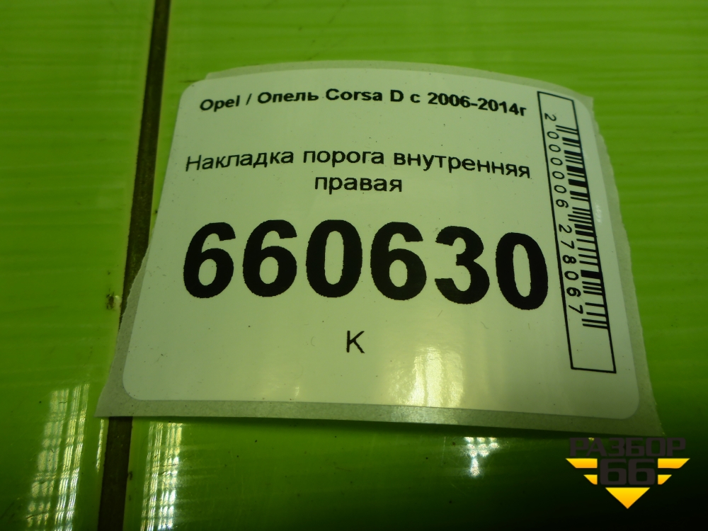Накладка порога внутренняя правая (3-х дверный кузов) (13180586) для Opel Corsa D с 2006-2014г (Корса Д) в Екатеринбурге