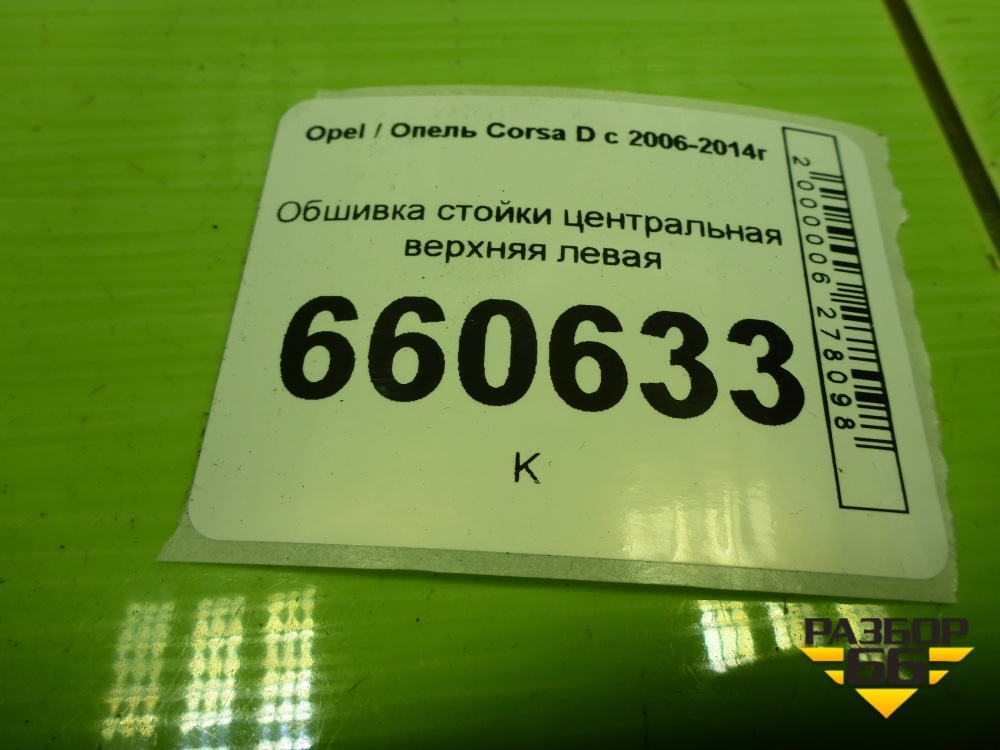 Обшивка стойки центральная верхняя левая (3-х дверный кузов) для Opel Corsa D с 2006-2014г (Корса Д) в Екатеринбурге