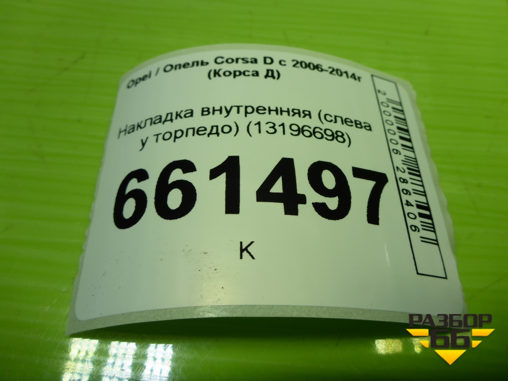 Накладка внутренняя (слева у торпедо) (13196698) для Opel Corsa D с 2006-2014г (Корса Д) в Екатеринбурге