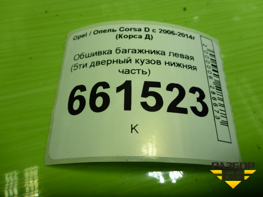 Обшивка багажника левая (5ти дверный кузов нижняя часть) (13230175) для Opel Corsa D с 2006-2014г (Корса Д) в Екатеринбурге
