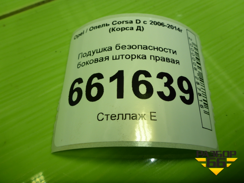 Подушка безопасности боковая шторка правая (5ти дверный кузов) (13150705) для Opel Corsa D с 2006-2014г (Корса Д) в Екатеринбурге