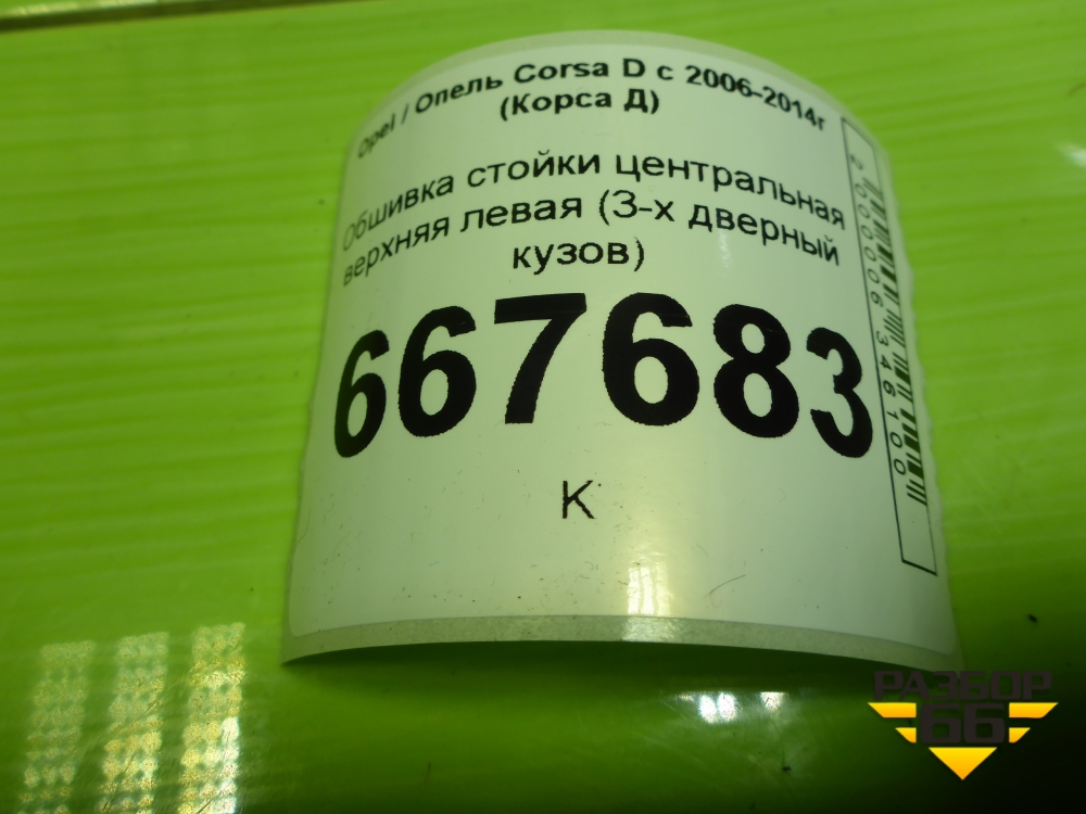 Обшивка стойки центральная верхняя левая (3-х дверный кузов) для Opel Corsa D с 2006-2014г (Корса Д) в Екатеринбурге