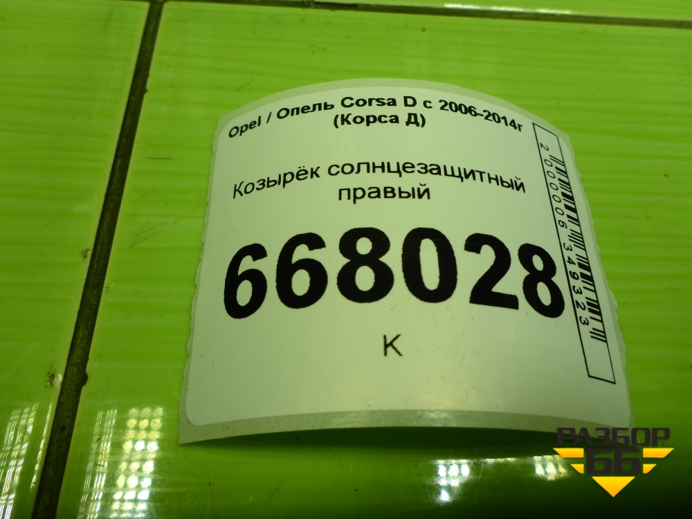 Козырёк солнцезащитный правый для Opel Corsa D с 2006-2014г (Корса Д) в Екатеринбурге