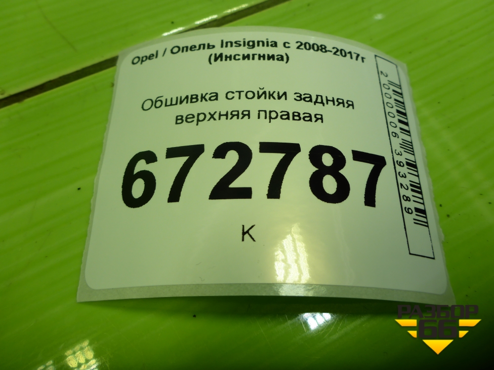 Обшивка стойки задняя верхняя правая (13221260) для Opel Insignia с 2008-2017г (Инсигниа) в Екатеринбурге