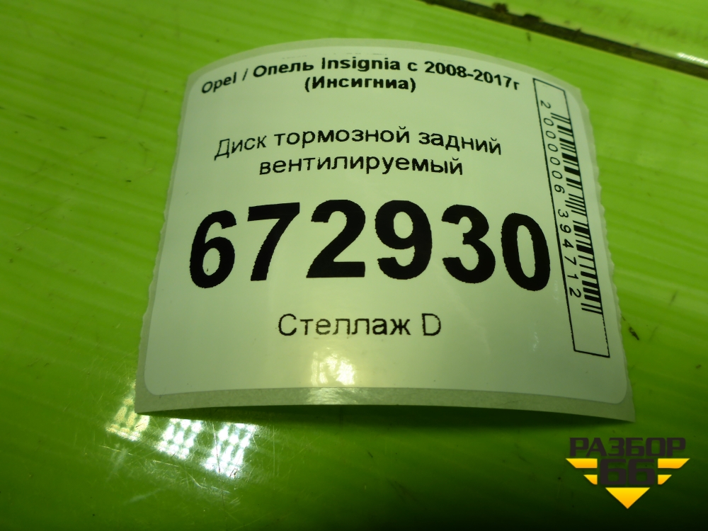 Диск тормозной задний вентилируемый для Opel Insignia с 2008-2017г (Инсигниа) в Екатеринбурге