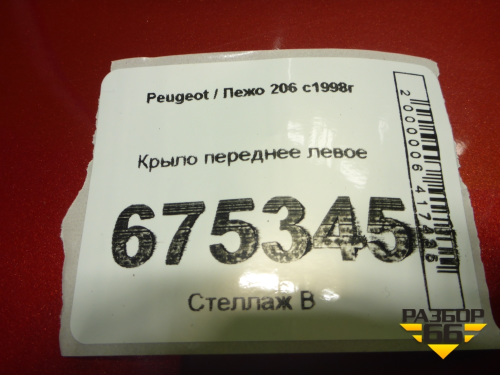 Крыло переднее левое для Peugeot 206 с1998г в Екатеринбурге