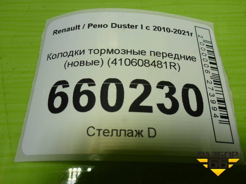 Колодки тормозные передние (новые) (410608481R) для Renault Duster I с 2010-2021г (Дастер) в Екатеринбурге