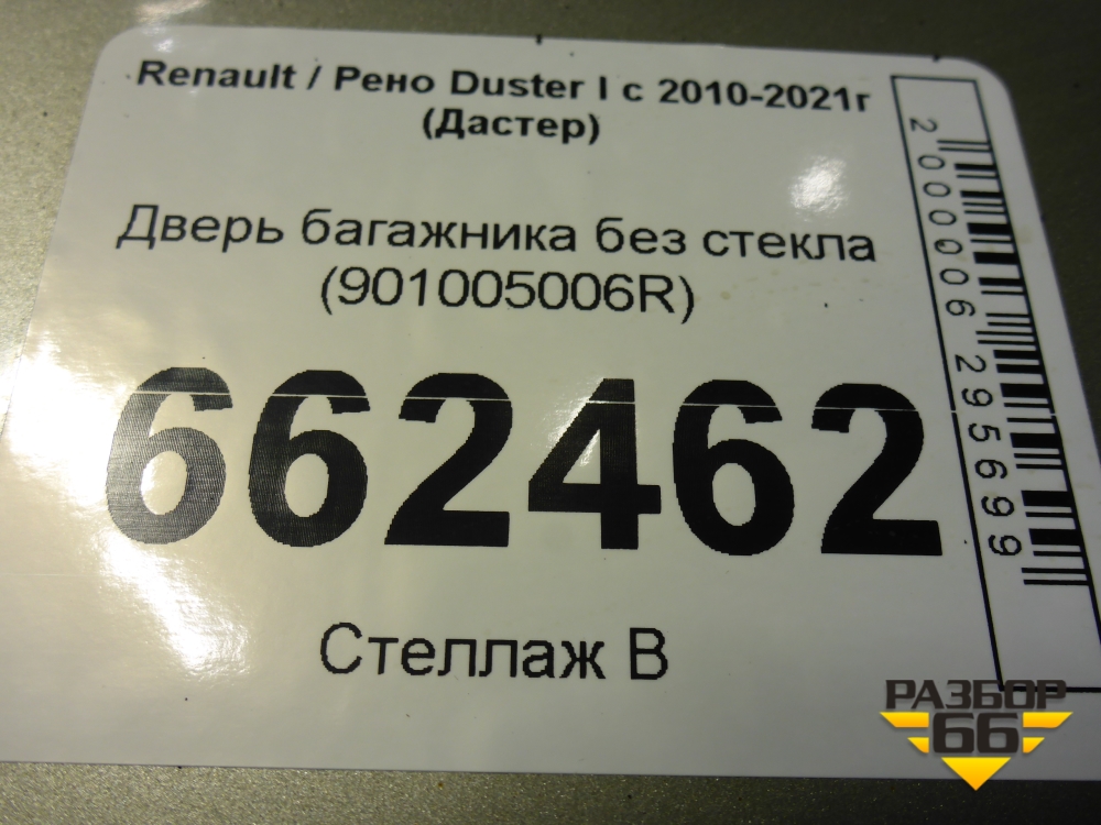 Дверь багажника без стекла (901005006R) для Renault Duster I с 2010-2021г (Дастер) в Екатеринбурге