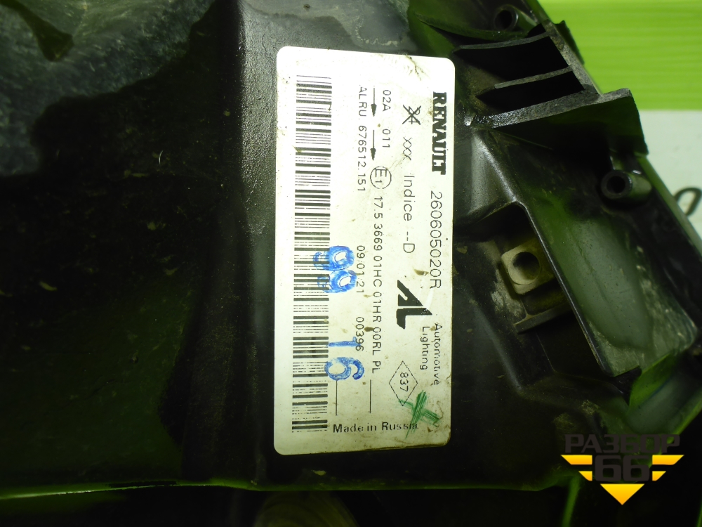 Фара левая (после 2015г галоген) (26605020R) для Renault Duster I с 2010-2021г (Дастер) в Екатеринбурге