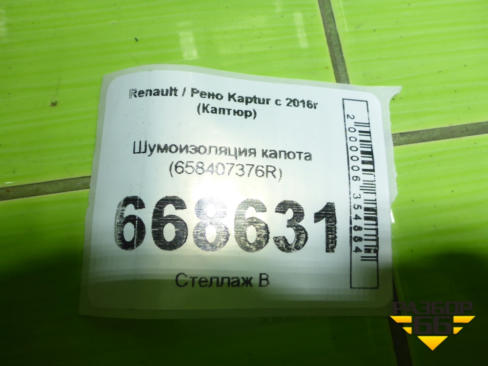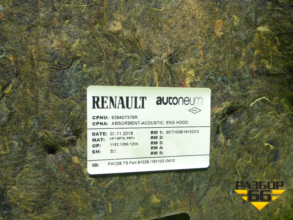 Шумоизоляция капота (658407376R) для Renault Kaptur с 2016г (Каптюр) в Екатеринбурге