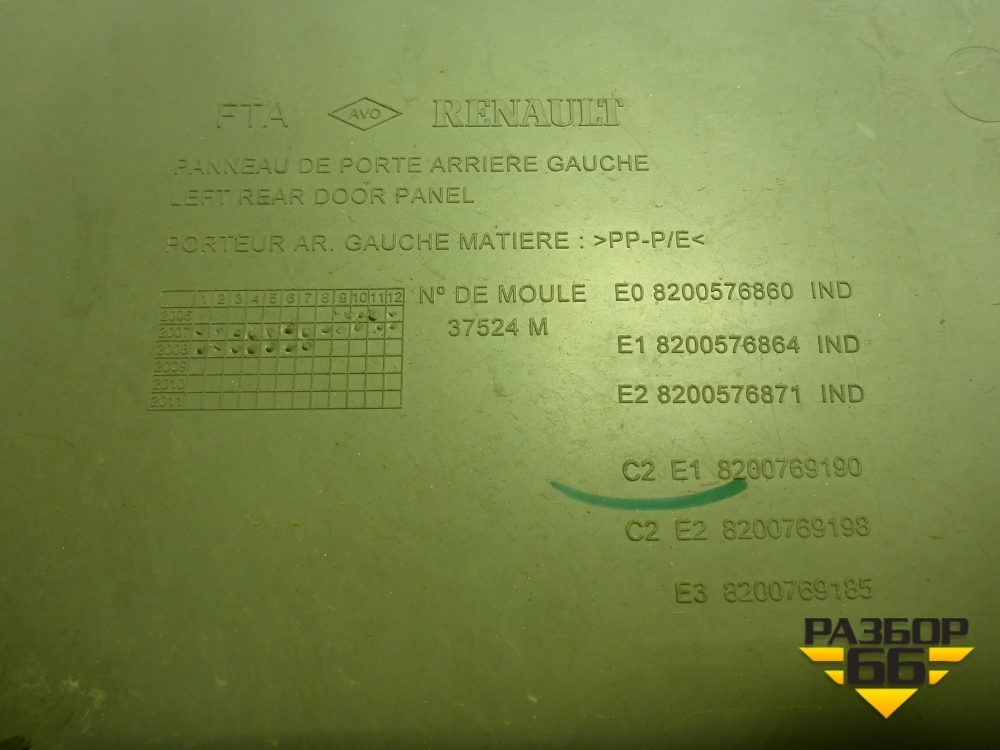Обшивка двери задней левой под механику (до 2009г) (8200576860) для Renault Logan с 2004-2015г (Логан) в Екатеринбурге
