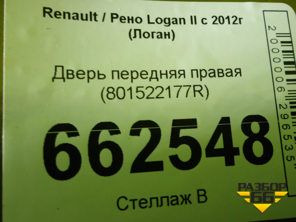 Дверь передняя правая (801522177R) для Renault Logan II с 2012г (Логан) в Екатеринбурге