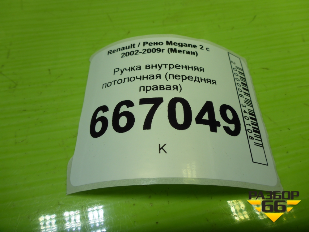 Ручка внутренняя потолочная (передняя правая) для Renault Megane 2 с 2002-2009г (Меган) в Екатеринбурге