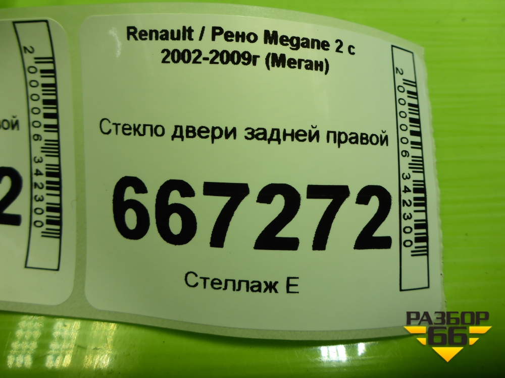 Стекло двери задней правой (седан) для Renault Megane 2 с 2002-2009г (Меган) в Екатеринбурге
