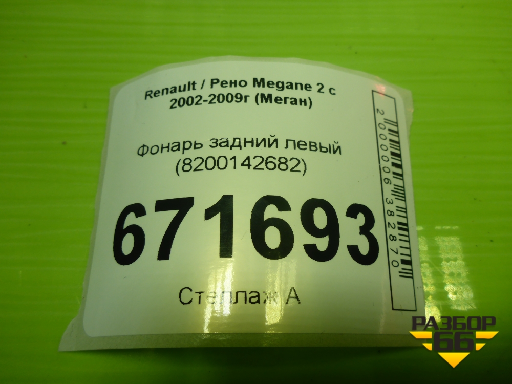 Фонарь задний левый (8200142682) для Renault Megane 2 с 2002-2009г (Меган) в Екатеринбурге