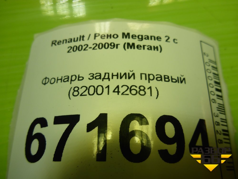 Фонарь задний правый (8200142681) для Renault Megane 2 с 2002-2009г (Меган) в Екатеринбурге