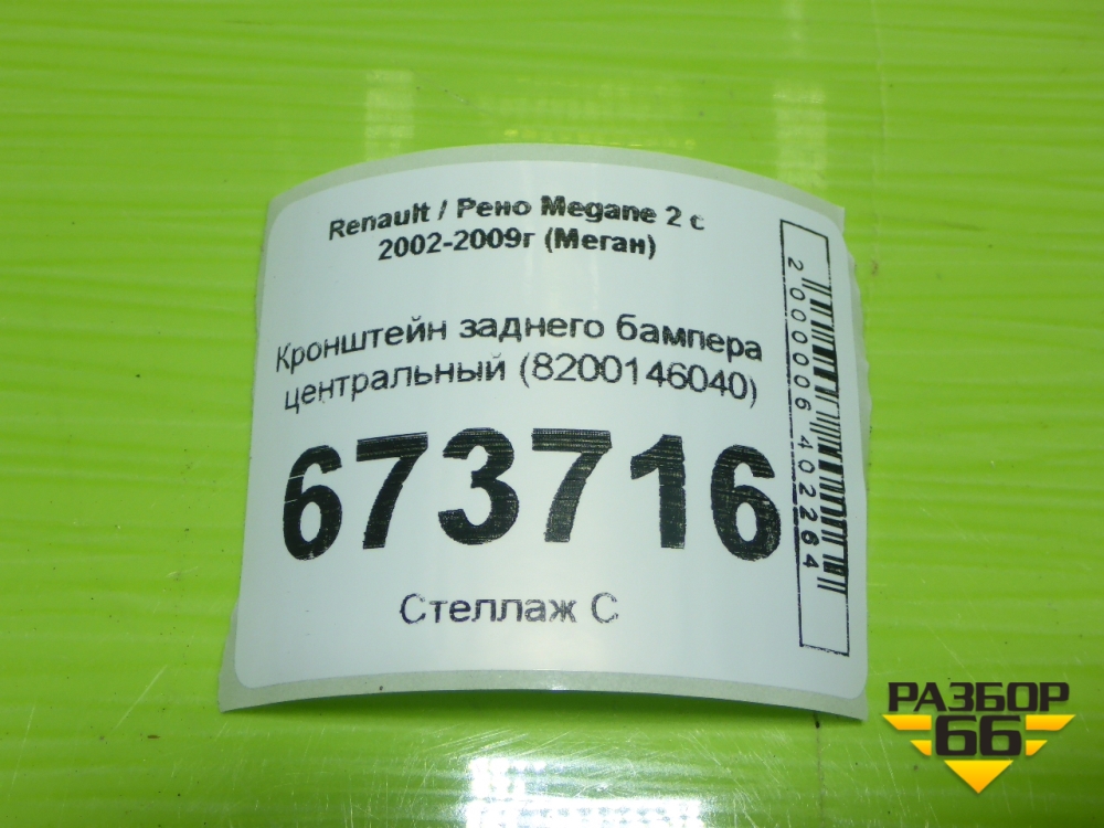 Кронштейн заднего бампера центральный (8200146040) для Renault Megane 2 с 2002-2009г (Меган) в Екатеринбурге