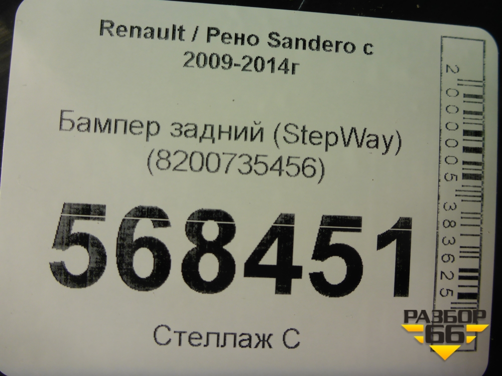 Бампер задний (StepWay) (8200735456) для Renault Sandero с 2009-2014г (Сандеро) в Екатеринбурге