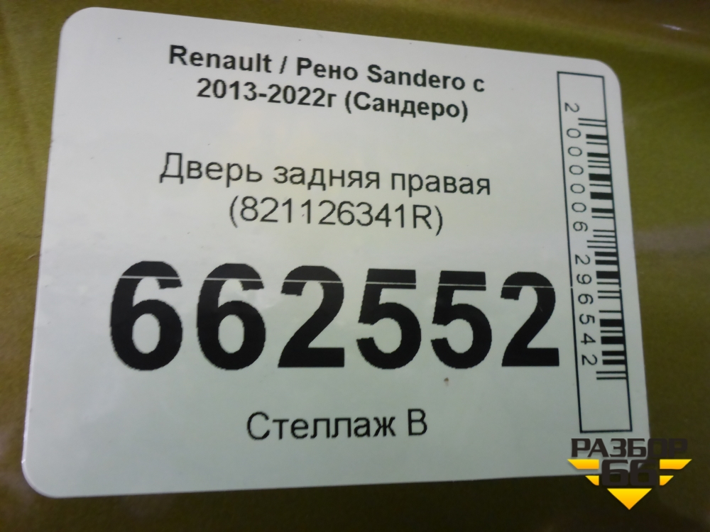 Дверь задняя правая (821126341R) для Renault Sandero с 2013-2022г (Сандеро) в Екатеринбурге