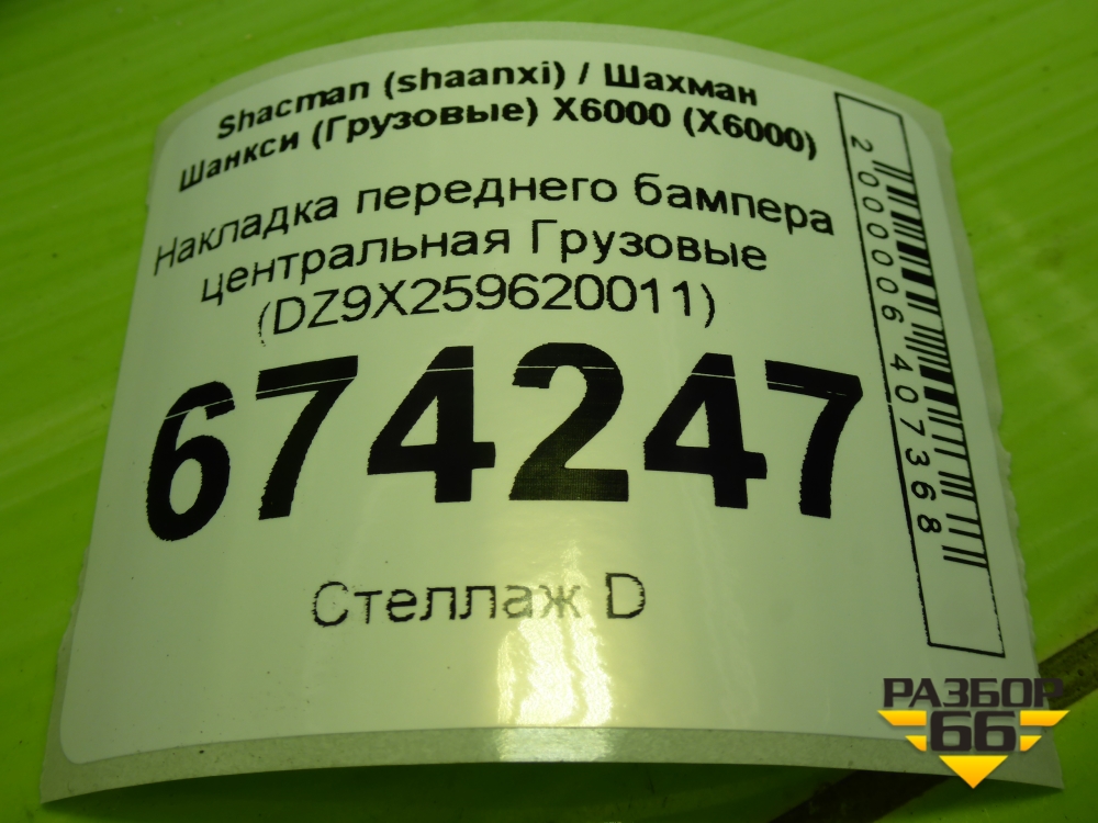 Накладка переднего бампера центральная (DZ9X259620011) для Shacman (shaanxi) X6000 (Х6000) в Екатеринбурге