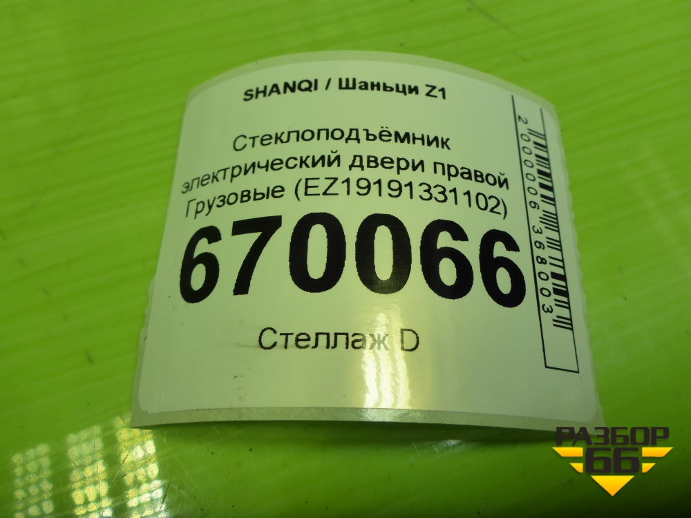 Стеклоподъёмник электрический двери правой (EZ19191331102) для SHANQI Z1 в Екатеринбурге