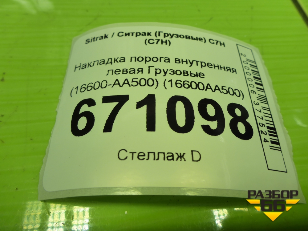 Накладка порога внутренняя левая (AZ16D162000015) для Sitrak C7H (С7Н) в Екатеринбурге