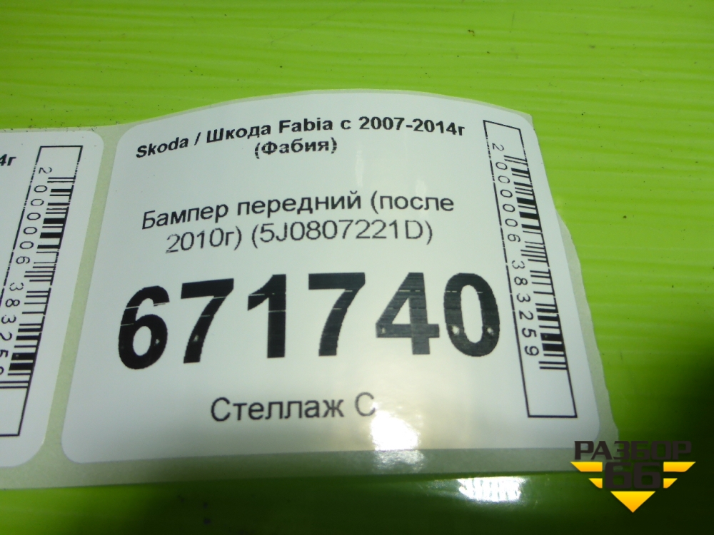 Бампер передний (после 2010г) (5J0807221D) для Skoda Fabia с 2007-2014г (Фабия) в Екатеринбурге