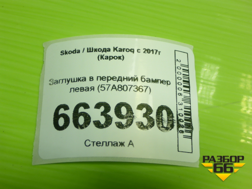 Заглушка в передний бампер левая (57A807367) для Skoda Karoq с 2017г (Карок) в Екатеринбурге