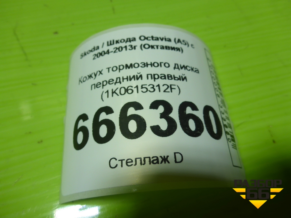 Кожух тормозного диска передний правый (1K0615312F) для Skoda Octavia (А5) с 2004-2013г (Октавия) в Екатеринбурге