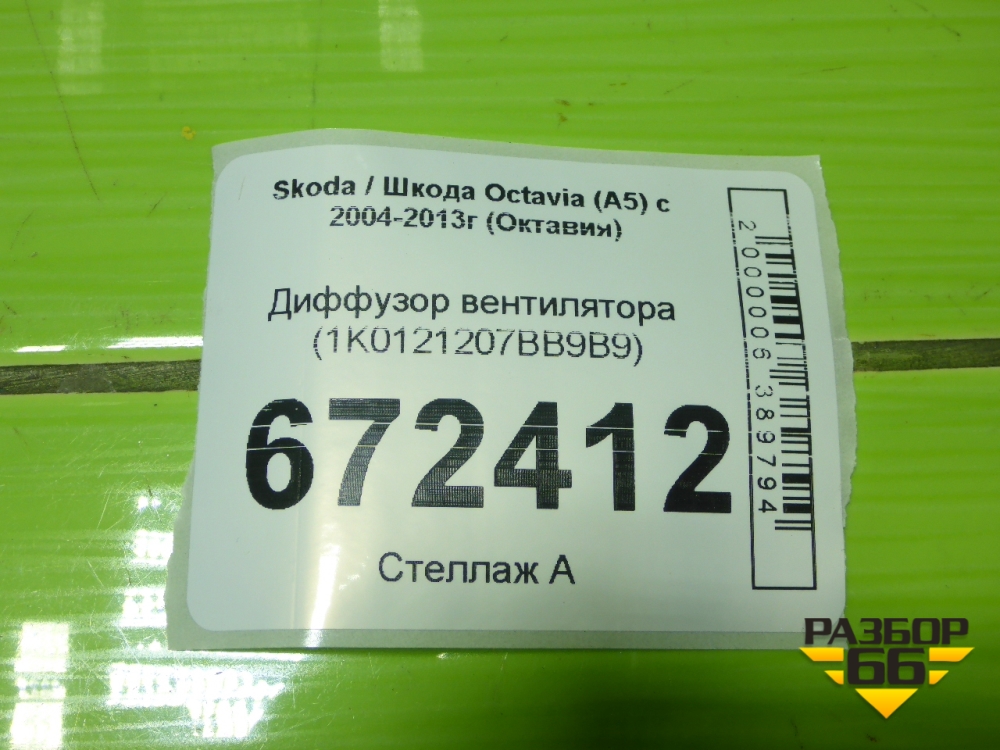 Диффузор вентилятора (1K0121207BB9B9) для Skoda Octavia (А5) с 2004-2013г (Октавия) в Екатеринбурге